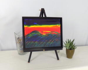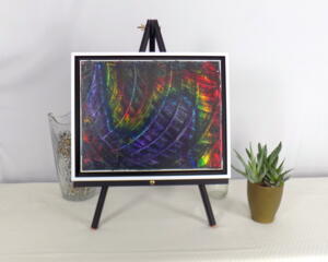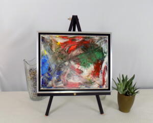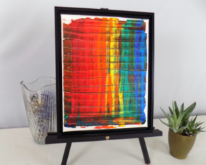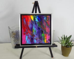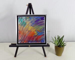 Framed acrylic painting title "Rainbow Chaos"