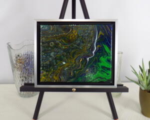 Framed acrylic pour painting blue and green