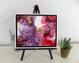 Framed red and purple acrylic pour painting