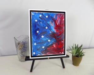 Patriotic red, white, and blue abstract flag framed art